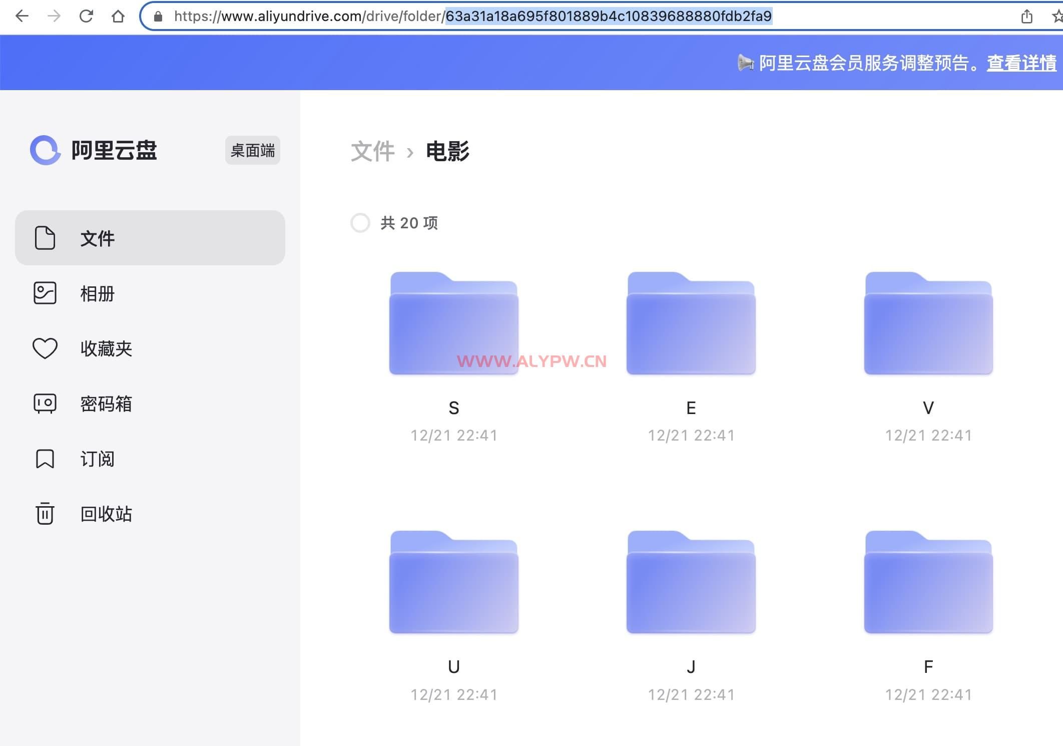 如果你只想挂载阿里云盘里的电影这个文件,就复制选中的这段字符替换默认的 root 填进根文件夹 ID 里。